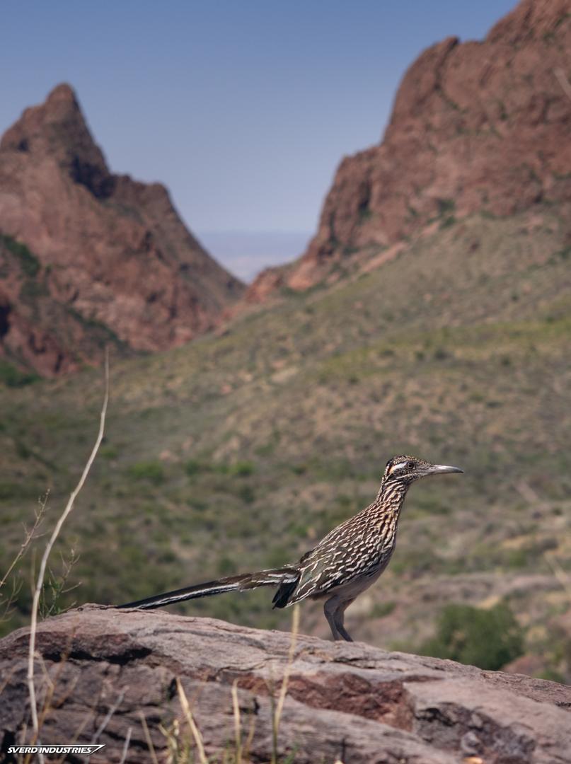 A Greater Roadrunner stands alert on a rocky outcrop in Big Bend National Park, Texas. The rugged mountains provide a stunning backdrop to this iconic desert bird. Known for their speed and agility, roadrunners are a common sight in the park, often seen darting across roads and trails.